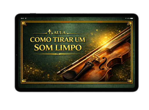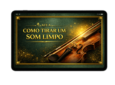 Você terá uma aula explicativa mostrando como tirar um som limpo no violino, ajustando arco, pressão e ponto de contato, e como praticar de forma simples para desenvolver um timbre claro e estável todos os dias.